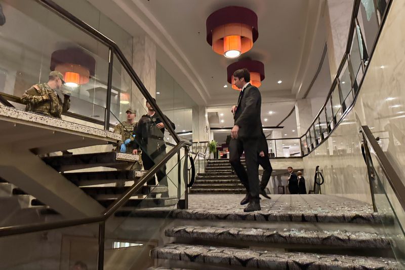 25일(현지시간) 로이터·AP통신 등에 따르면 이날 밤 워싱턴DC에서 열린 백악관출입기자협회(WHCA) 만찬 행사 도중 인근에서 총성이 발생했다. 경호원들은 트럼프 대통령과 멜라니아 트럼프 여사를 즉시 현장에서 이동시켰다.