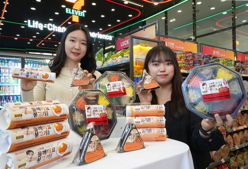 [파이낸셜뉴스] 세븐일레븐은 미쉐린 1스타 레스토랑을 운영하는 김희은 셰프와 협업한 간편식 4종을 오는 29일 출시한다고 26일 밝혔다. 이번 제품은 더덕, 들깨 등 한식 제철 식재료를 활용해 기존 편의점 간편식과 차별화한 것이 특징이다. 김희은 셰프와 손잡고 출시한 간편식 4종을 모델들이 홍보하고 있다. 코리아세븐 제공clean@fnnews.com 이정화 기자