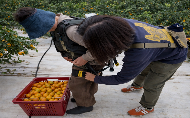 【파이낸셜뉴스 제주=정용복 기자】 제주 농업인들이 감귤 수확과 운반 작업 때 허리 부담을 덜어주는 웨어러블 로봇을 빌려 쓸 수 있게 된다. 농촌 고령화와 인력난이 심화되는 상황에서 인공지능(AI)·디지털 기술을 농업 현장에 적용해 작업 피로를 줄이고 안전을 높이려는 시도다.