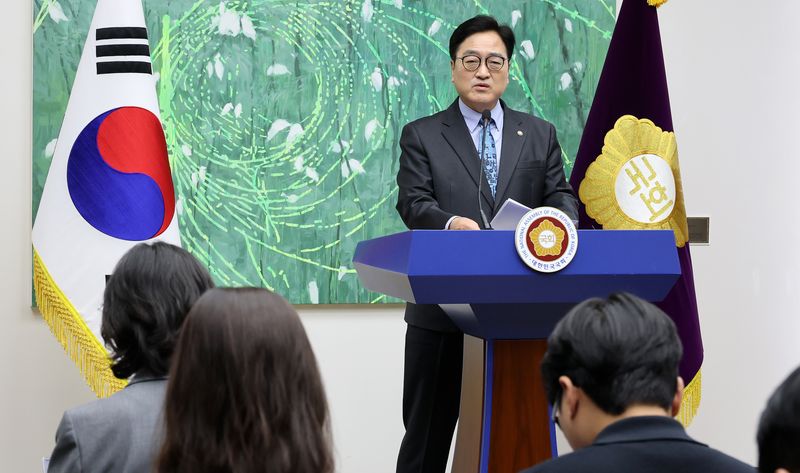 우 의장은 "계엄 사과와 절윤(윤 전 대통령과 절연) 선언의 진정성을 믿지 못하는 이유는 그 태도 때문"이라며 "최소한 국민의힘 의원들이 자기 양심과 소신에 따라 본회의장에서 투표할 수 있도록 해야 한다. 당론으로 개헌안 투표를 포기하게 해서는 안 된다"고 촉구했다.