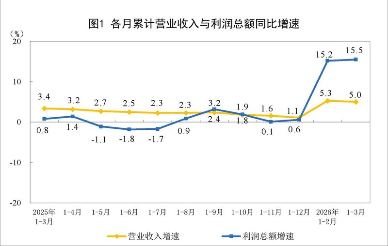 27일 중국 국가통계국은 "지난 3월 '규모 이상 공업 기업(연간 매출액 2000만위안 이상 공업 기업)'의 이익(이윤 총액)이 15.8% 증가했다"고 밝혔다. 발표에 따르면, 1·4분기 공업이익 합계는 1조6960억4000만위안(약 365조9000억원)으로, 전년 동기 대비 15.5% 증가했다. 1∼3월 공업이익의 증가율은 1∼2월(15.2%)보다 0.3%p 상승한 것으로 나타났다.