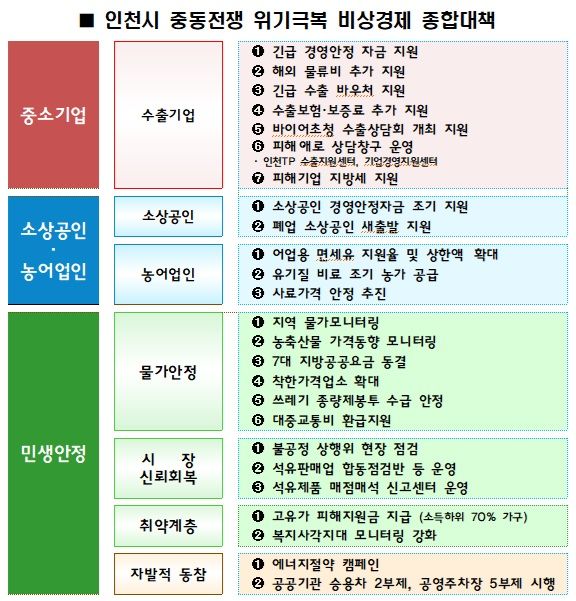 【파이낸셜뉴스 인천=한갑수 기자】 인천시가 중동 전쟁 장기화에 따른 지역경제 충격을 최소화하기 위해 종합 대응책 마련에 나선다.
