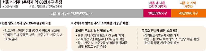 한편 전날 국회에서는 보유기간에 따른 공제를 전면 폐지하고, 실제 거주 기간에 따라 공제율을 차등 적용하는 소득세법 개정안이 나왔다. 장특공제를 전면 폐지하고 3년 이상 보유 주택 양도 시 1인당 세금 감면 한도를 평생 2억원으로 축소하는 내용의 법안도 발의돼 있다.