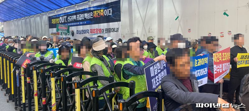 집회 참여자는 약 전재연 조합원 300여명으로 이들은 더불어민주당 민원실에 재초환법 폐지 촉구 사유서와 회원 조합원 6500명의 서명부를 전달했다.