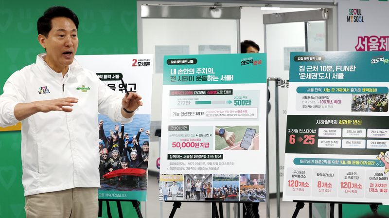 오 후보는 "고도비만 판정을 받은 시민에게는 체육시설 이용 포인트를 지급하는 등 인센티브를 강화한다"며 "체력인증센터를 현재 27곳에서 100곳까지 확대해 집 근처 10분 내 운동이 가능한 '운세권 도시'를 만들겠다"고 말했다.