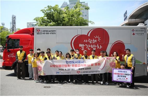 '사랑의 빨간 밥차'는 취약계층에게 무료 식사를 제공하는 나눔 프로그램이다. 인천도시공사는 지난 2023년부터 (사)사랑의쌀나눔본부와 협력해 정기적으로 사랑의 빨간 밥차 봉사활동을 이어오고 있다.