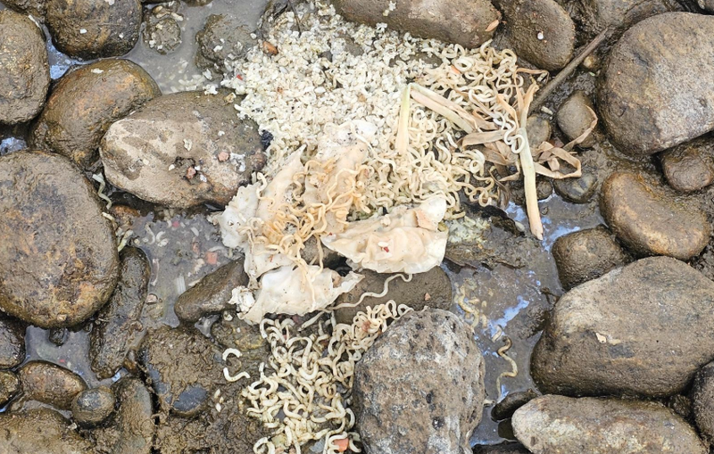 공개된 사진에는 라면과 만두 등 먹다 남은 음식물 쓰레기가 그대로 방치돼 있고 쓰레기로 가득 찬 종량제봉투와 종이박스 등이 강가 근처에 그대로 버려져 있다.
