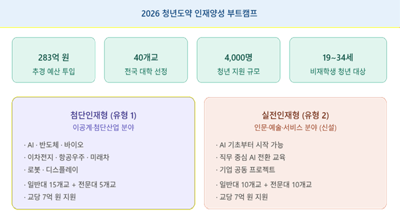 교육부와 한국산업기술진흥원은 29일 이 같은 내용을 담은 2026년 청년도약 인재양성 부트캠프 운영 계획을 발표했다.