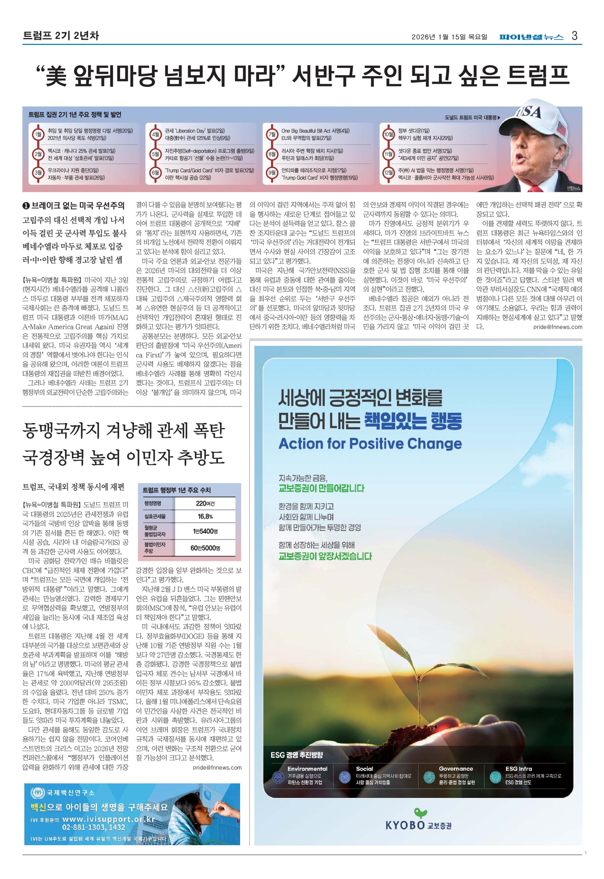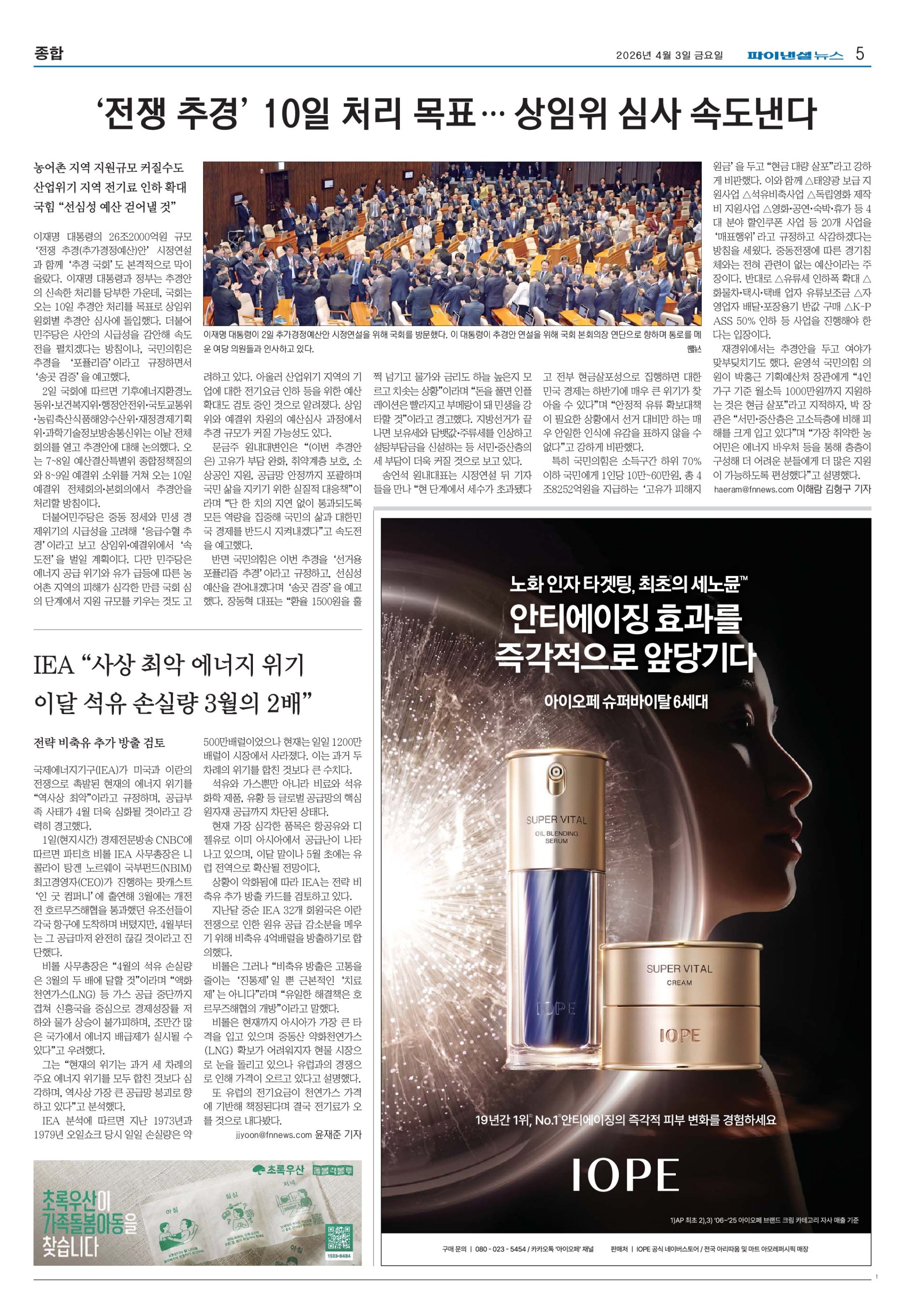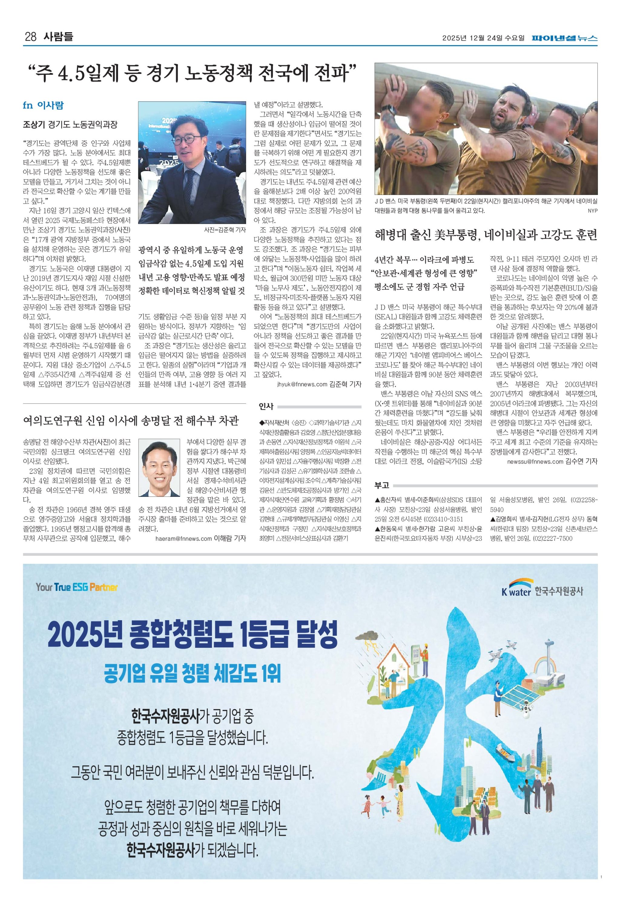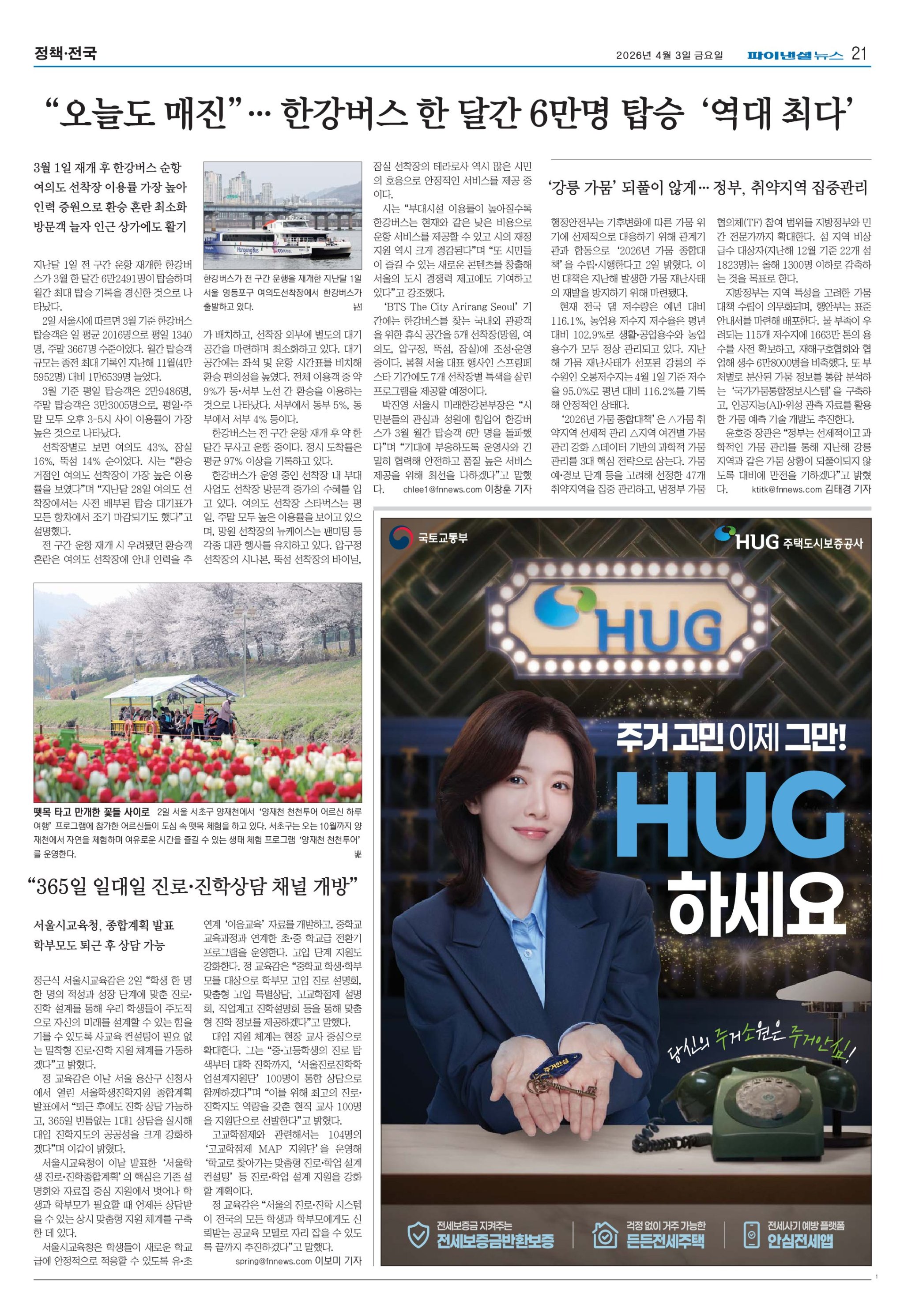 토요일은 인터넷판 신문만 발행되며 일요일은 신문이 발행되지 않습니다.
